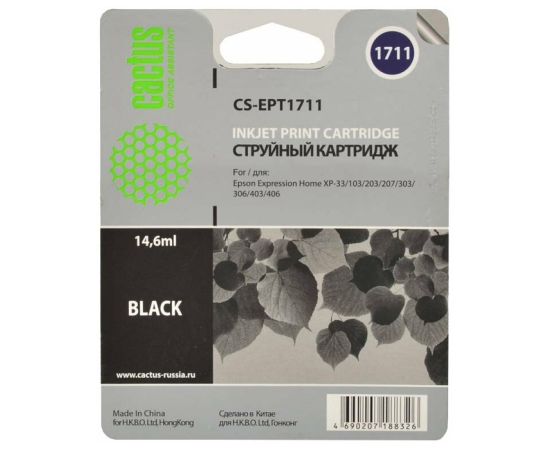 Картридж струйный Cactus CS-EPT1711 черный для Epson Expression Home XP-33/103/203/207/303 (14,6ml)