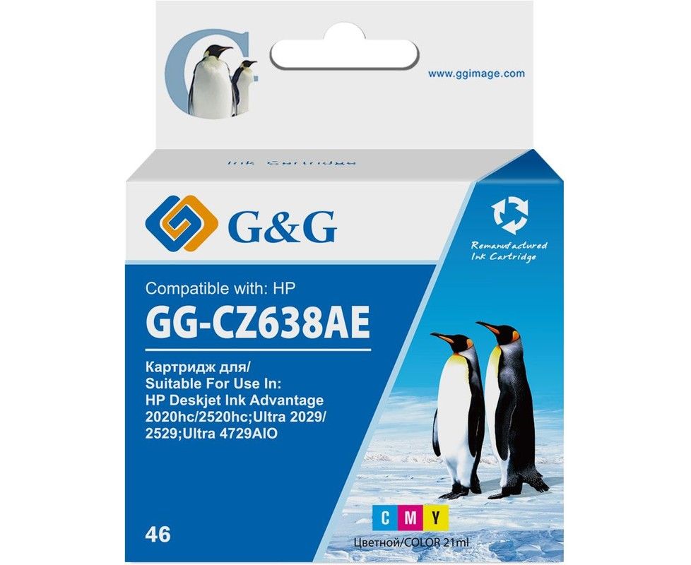 Картридж струйный G&G GG-CZ638AE 46 многоцветный (21мл) для HP DJ Adv 2020hc/2520hc