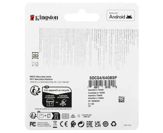 Карта памяти Kingston Canvas Go! Plus microSDXC 64 ГБ [SDCG4/64GBSP] соответствует классам скорости A2, Class 10, UHS Class 3 и Video Class 30. Изделие предназначено для смартфонов, фотокамер и других устройств.