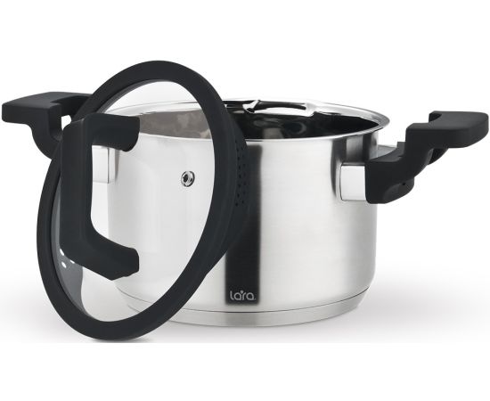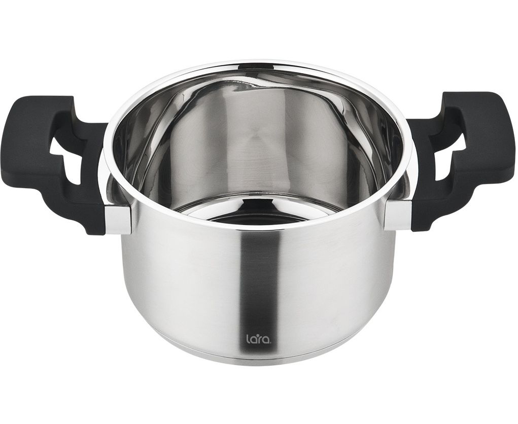 Кастрюля LARA LR02-292 нерж Премиум 20x12,5см 3.9л, индукционное дно, все типы плит, Soft-touch