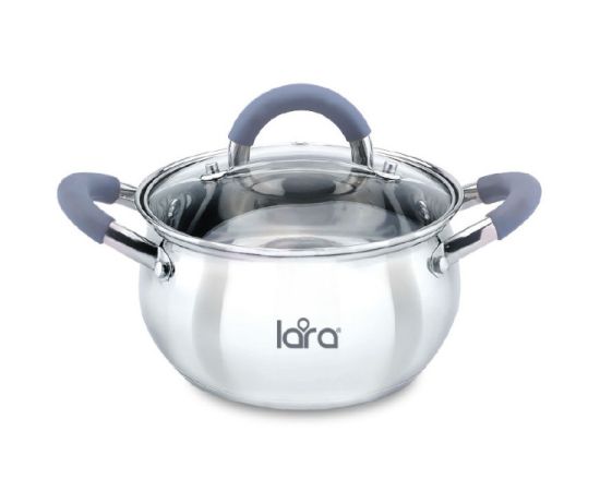 Кастрюля LARA LR02-481 (нерж) серия bell 18x10,5см, 2,6л, капс. инд дно, силик. ручка, стекл. крышка