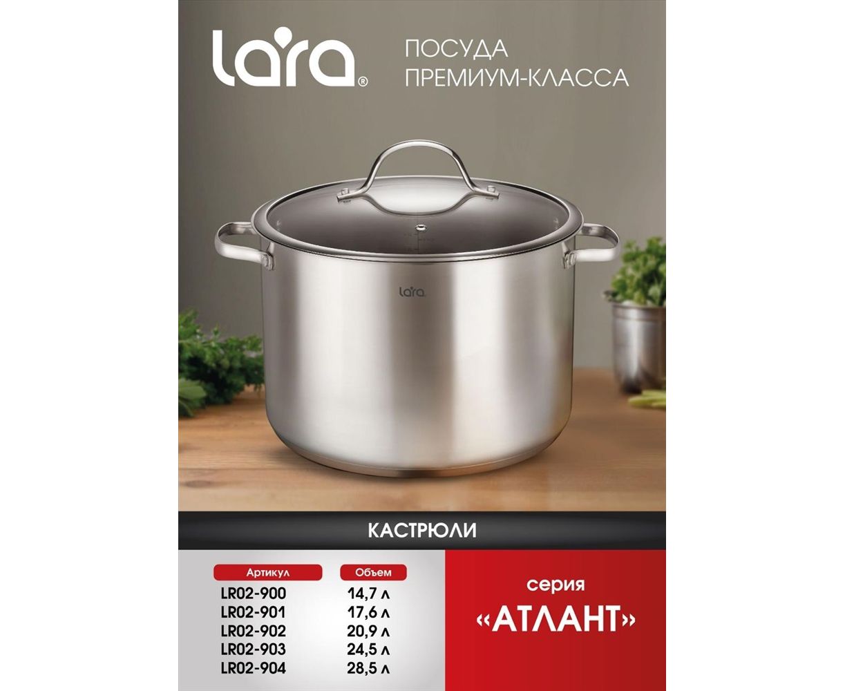 Кастрюля LARA LR02-900 Атлант нерж