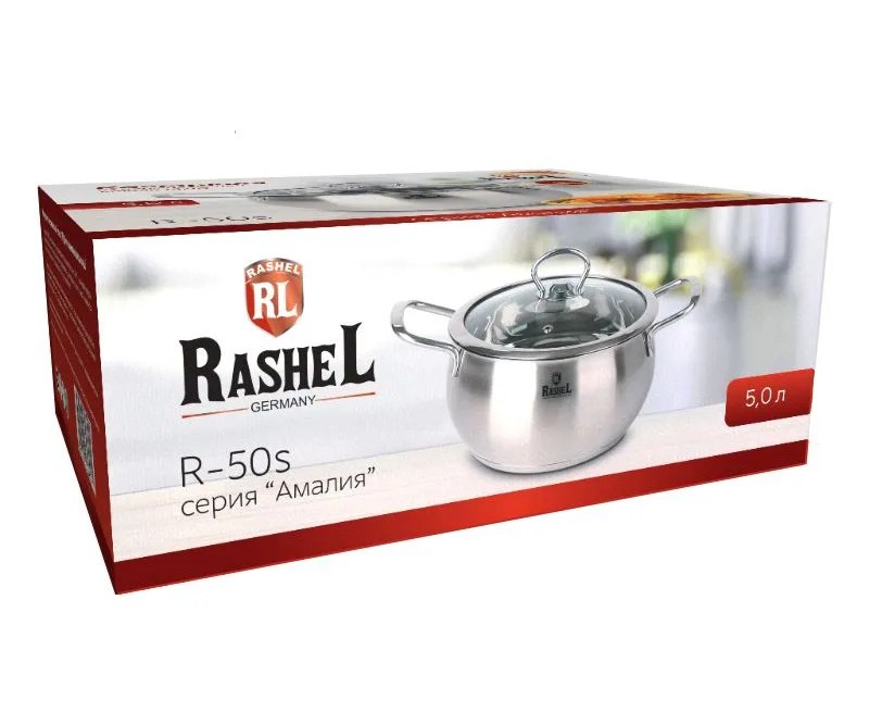 Кастрюля Rashel R-50s Амалия со стекл. крышкой 5л