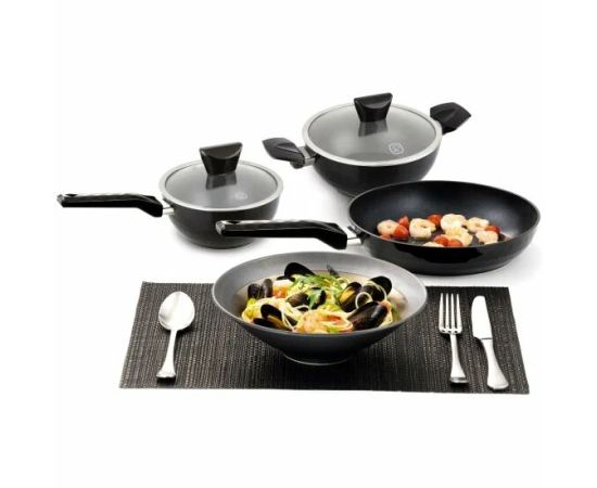 возможно использование металлических лопаток, отверстие в крышке для выпуска пара, эргономичная форма ручек; марка антипригарного покрытия TriTitan; материал крышки: стекло; материал ручек: бакелит