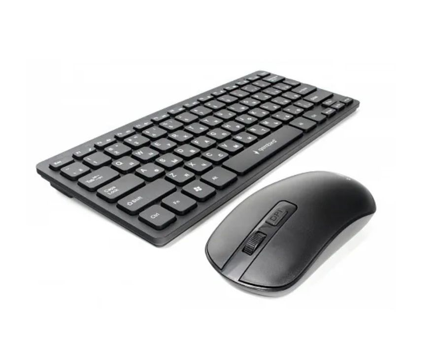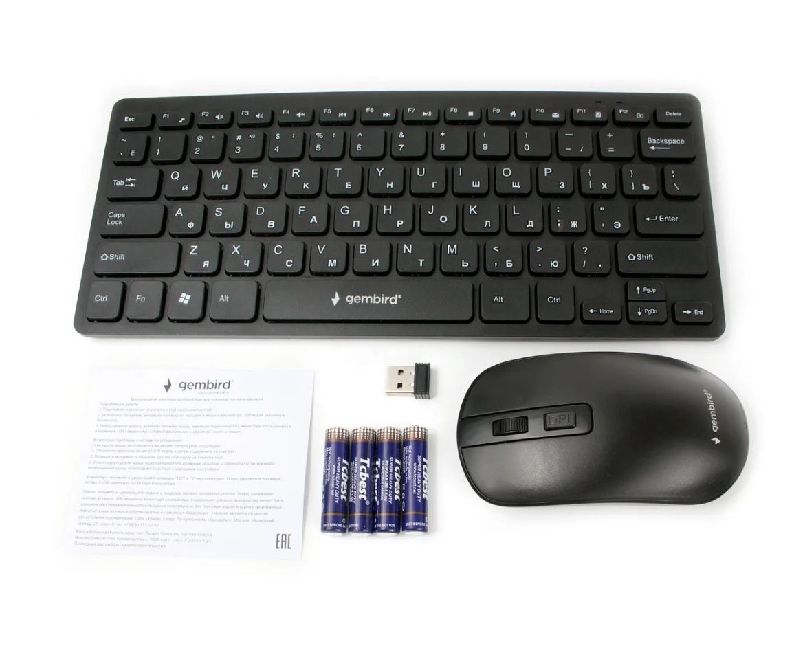 - Gembird KBS-9100 — беспроводной комплект чёрного цвета, состоящий из мини-клавиатуры и мыши со сменным разрешением