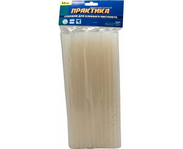 Клей белый, прозрачный (33 шт; 11х300 мм) для клеевого пистолета ПРАКТИКА 641-619 предназначен для прочного соединения деталей из картона, полимерных материалов, пластиков, резины, линолеума, кожи, ткани, керамики, фарфора, стекла. Температура плавления 85°С. Время застывания 35-45 с. Рекомендованная мощность пистолета от 30 Вт. Не содержит токсичных элементов.
