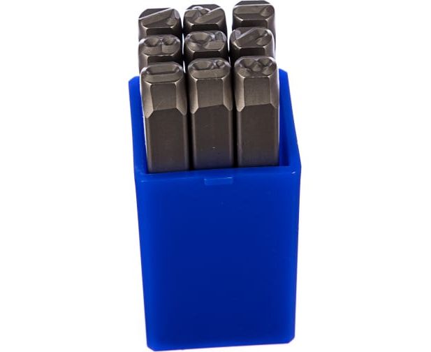 Комплект клейм располагается в прочном пластиковом держателе.
