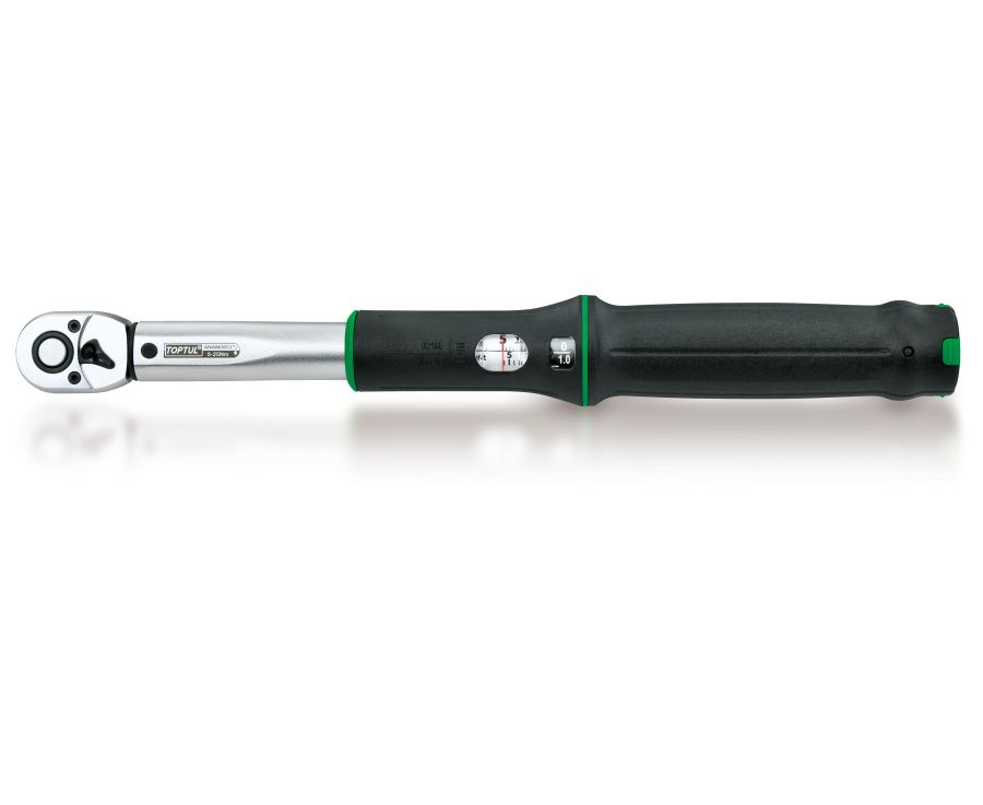 Ключ динамометрический 5-25 Нм 1/4" TOPTUL (ANAM0803) является специализированным профессиональным инструментом. Применяется для регулировки усилия при затяжке ответственных резьбовых соединений. Рабочая головка снабжена храповым механизмом с переключателем. Циферблат индикатора крутящего момента выпуклый, с большими цифрами, что гарантирует легкое считывание показателей. Эргономичная рукоять не проскальзывает в руке, увеличивая эффективность и удобство работы.