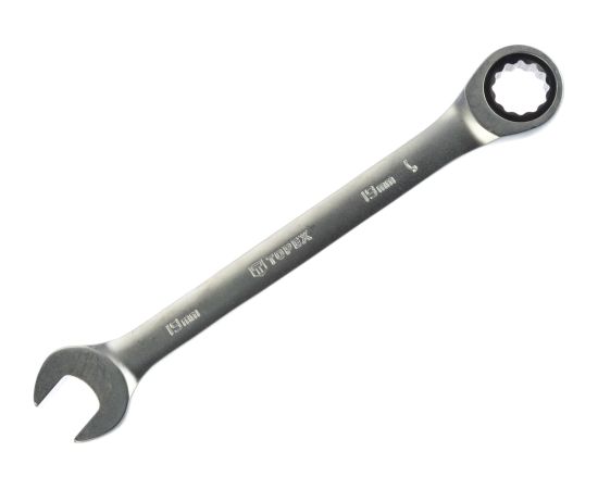 Ключ комбинированный с трещоткой TOPEX отличается точным, трещоточным механизмом с 48 зубцами в накидной части. Данное решение значительно облегчает и ускоряет работу. Изготовлен из высококачественной хромованадиевой стали, обеспечивающей долгий срок службы ключа.