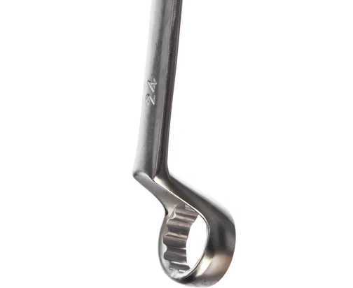 Ключ накидной изогнутый TOPEX благодаря своей конструкции позволяет работать с винтами, расположенными в углублениях. Изготовлен из высококачественной хромованадиевой стали, обеспечивающей долгий срок службы инструмента.