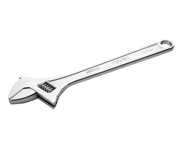 Разводной ключ DELI DL018a 450мм, 0-55мм 98312 (0-55мм, инструментальная сталь, хромированный) используется для вращения гаек, болтов в процессе ремонтных и монтажных работ.