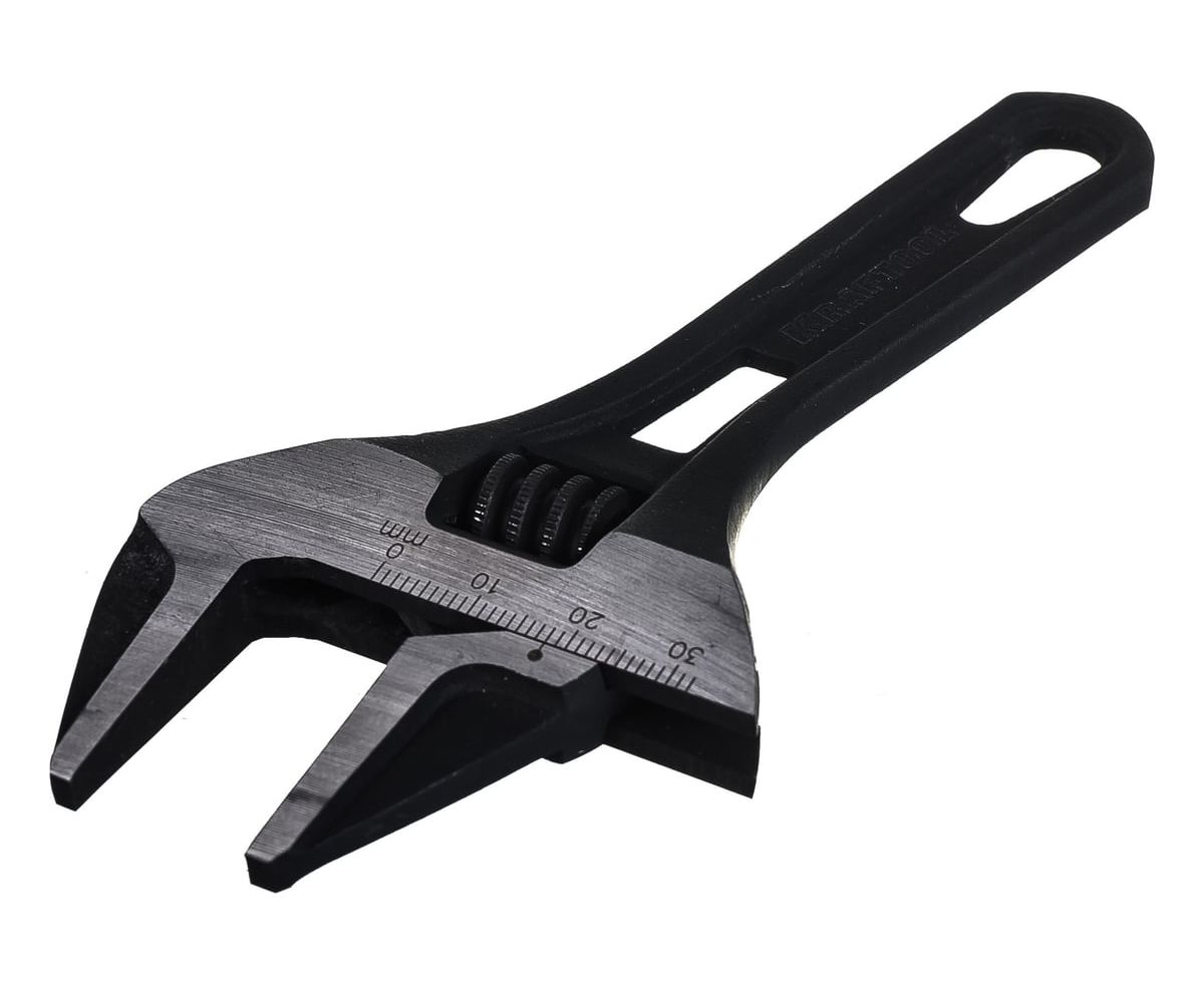 Разводной ключ KRAFTOOL SlimWide Compact 140/32 мм 27266-20 имеет червячный винт с четырьмя витками для большего сопротивления нагрузкам.
