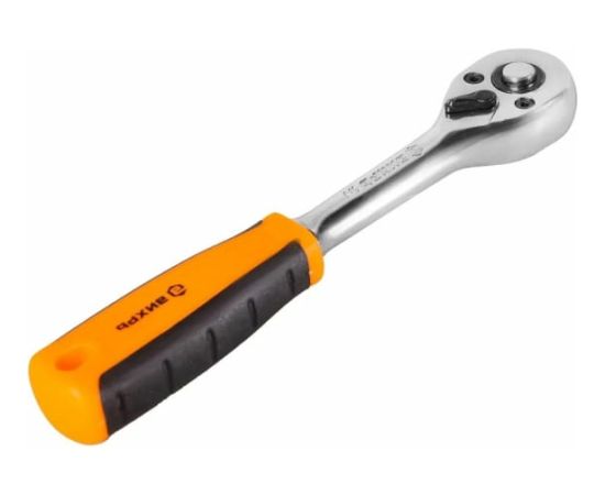 Ключ-трещотка предназначена для быстрого и эффективного закручивания или откручивания крепежа. Инструментом удобно пользоваться в условиях ограниченного пространства, когда нет возможность выполнить полный оборот вокруг грани. Используется в быту и при авторемонте. Рабочая часть изготовлена из CR-V стали и обладает особой прочностью. Хромированное покрытие надежно защищает трещотку от коррозии. Трещотка снабжена механизмом быстрого сброса насадок, что ускоряет процесс работы. Двухкомпонентная рукоятка не выскальзывает из ладони. Трещоточный 72-зубцовый механизм обеспечивает плавность хода, а малый угол поворота в 5 градусов позволяет работать в ограниченном пространстве. Наличие в трещотке храпового механизма обеспечивает быструю смену направления вращения и упрощает работу в труднодоступных местах