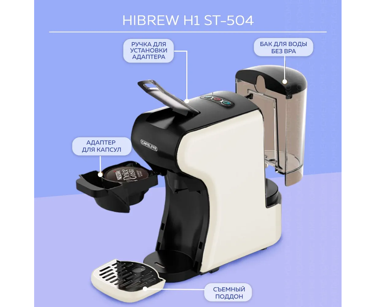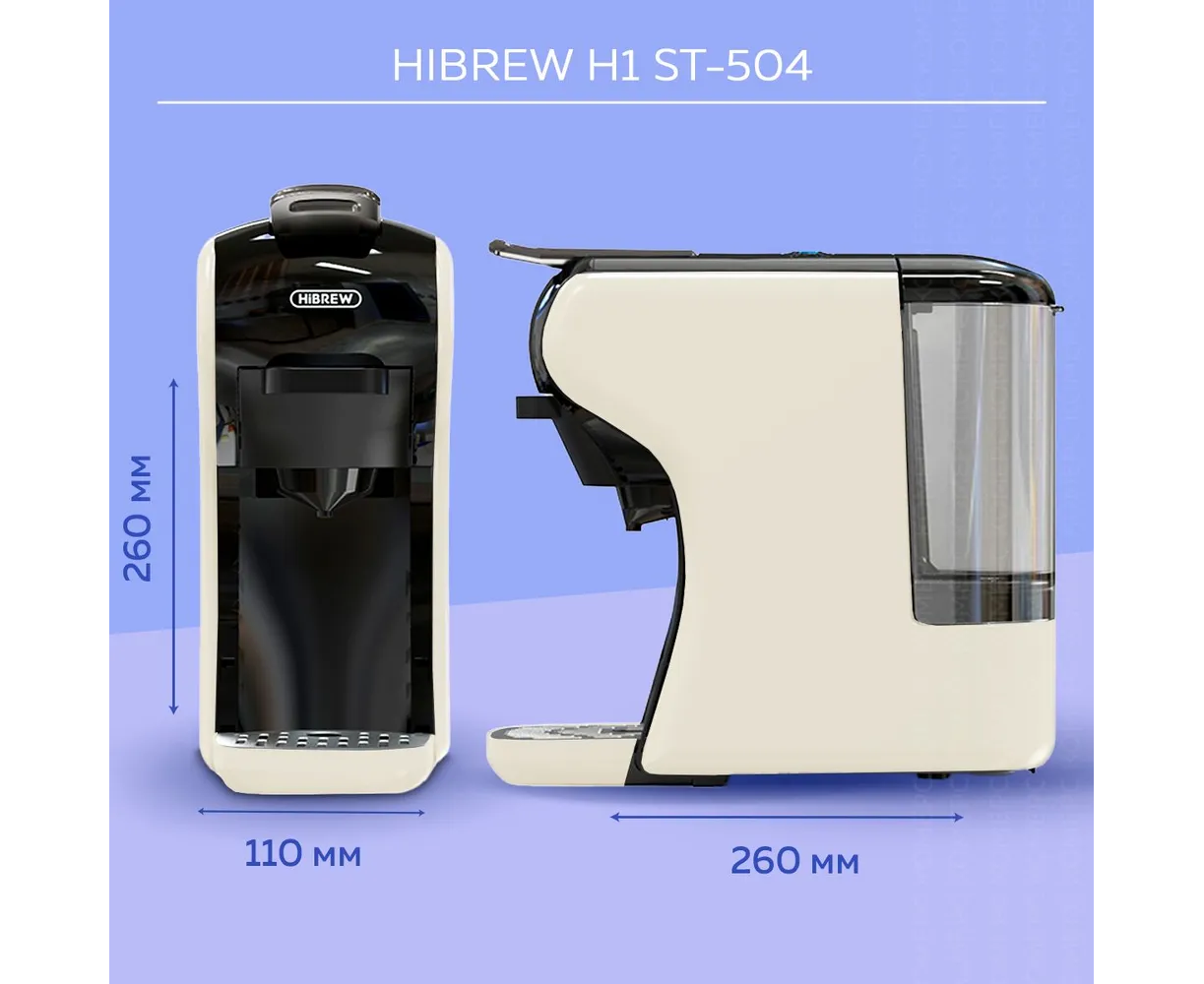 Капсульная кофеварка HIBREW ST-504 предназначена как для приготовления кофе с помощью капсул, так и молотого кофе. Она совместима с самыми распространенными типами капсул известных брендов и имеет в комплектации адаптер для молотого кофе. Широкий спектр настроек позволит приготовить чашечку крепкого вкусного кофе в соответствии с вашими предпочтениями и удовлетворит вкус даже заядлых кофеманов.