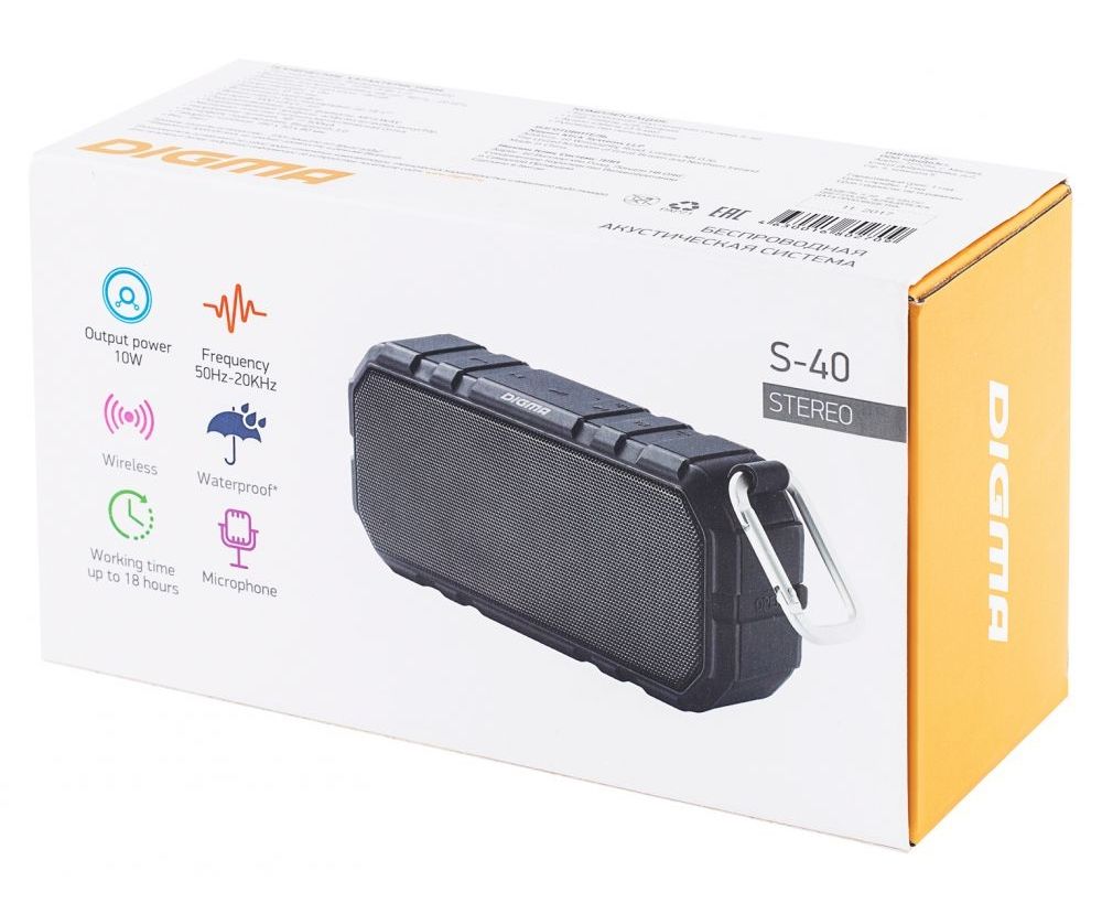 Колонка портативная Digma S-40 черный 10W 1.0 BT 2000mAh (SP4010B)