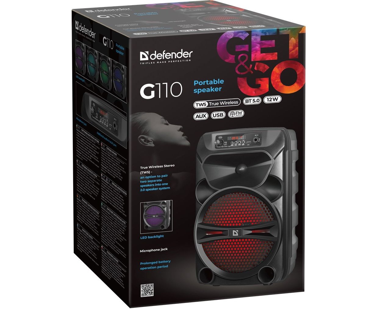 Портативная колонка DEFENDER G110 12Вт, Light/BT/FM/USB/LED/AUX