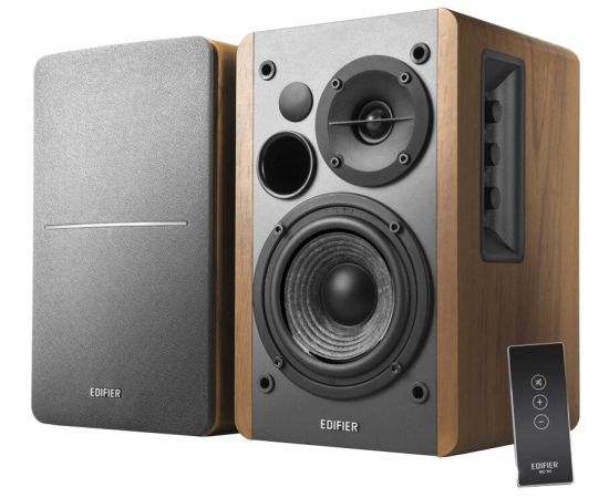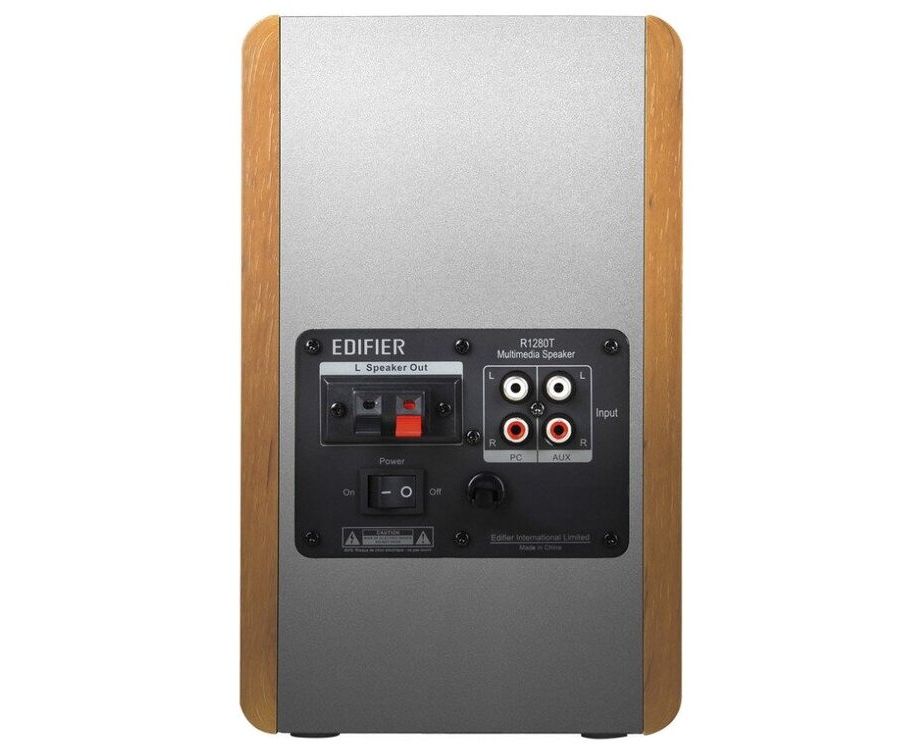 Колонка построена на 4" басовом динамике с фронтальным фазоинвертором. Материал диффузора – прессованная бумага с вкраплениями шерсти. Такой сложный материал понадобился для обеспечения высокой степени достоверности звучания. Управление моделью R1280T осуществляется беспроводным пультом дистанционного управления с регулировкой громкости и отключением звука. Корпуса колонок прямоугольной формы и выполнены из МДФ (древесноволокнистой плиты средней плотности; Модель оснащена универсальным блоком питания 110V-240V на импульсном трансформаторе. Это современное решение имеет широкий диапазон допустимых напряжений сети, надежно, имеет высокий КПД, низкий нагрев и большую мощность.