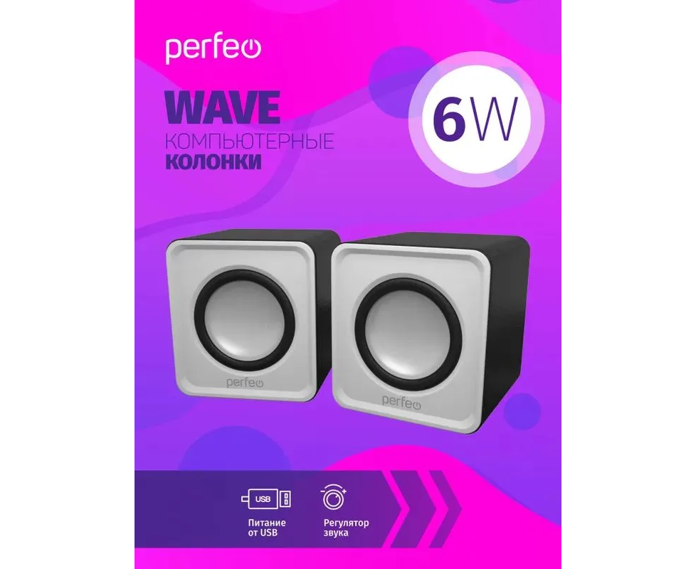Колонки Perfeo"WAVE" 2.0, мощность 2х3Вт (RMS), белый, USB