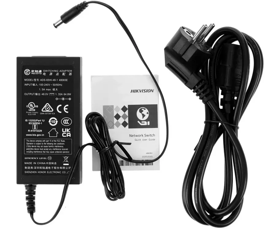 Коммутатор, адаптер питания, документация.