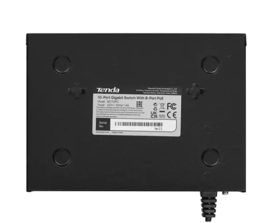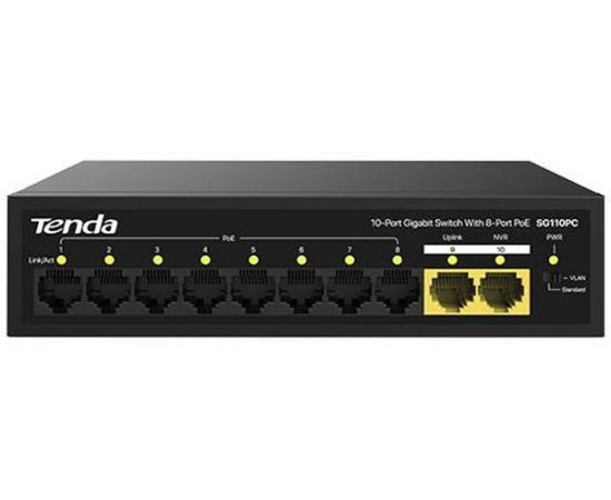 Коммутатор неуправляемый PoE Tenda SG110PC 10 портов, 10x1Гбит/с, PoE 8х30Вт, 2хUplink, настольный