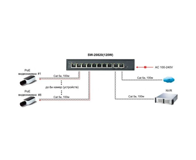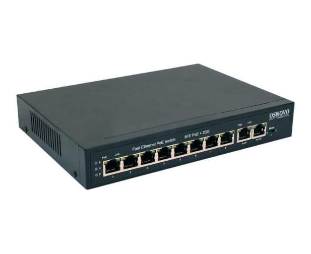 Коммутатор OSNOVO SW-20820(120W) PoE 8 x FE с поддержкой (IEEE 802.3af/at), 2 GE