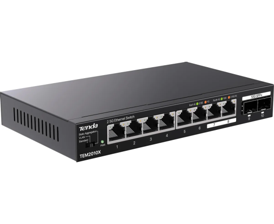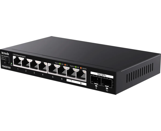 Коммутатор Tenda TEM2010X неуправляемый, 10 портов, RJ-45 8х2,5 Гбит/с, SFP+ 2х10 Гбит/с, настольный, металлический