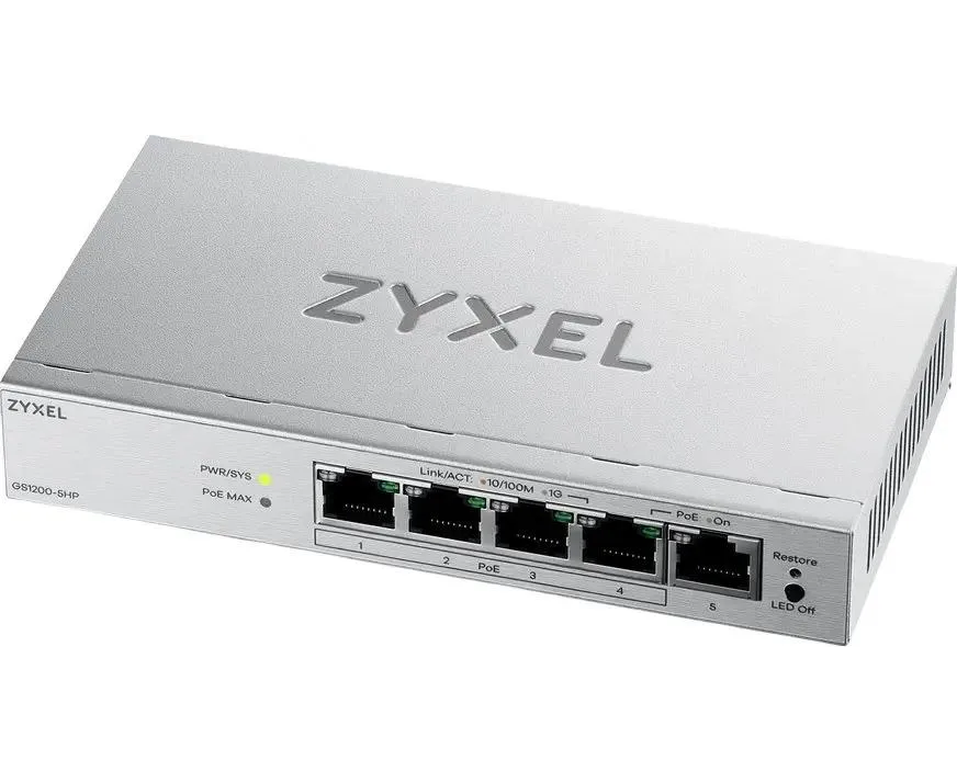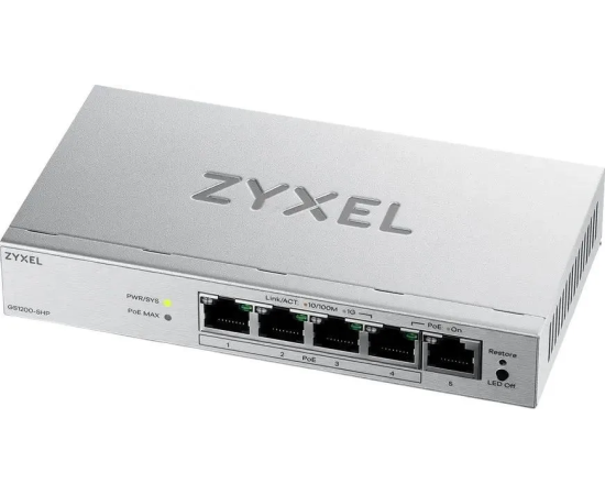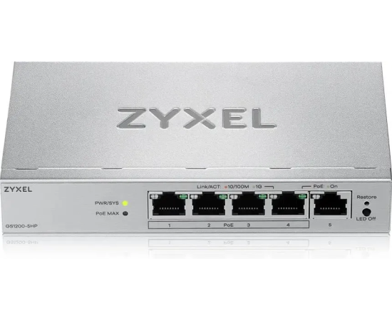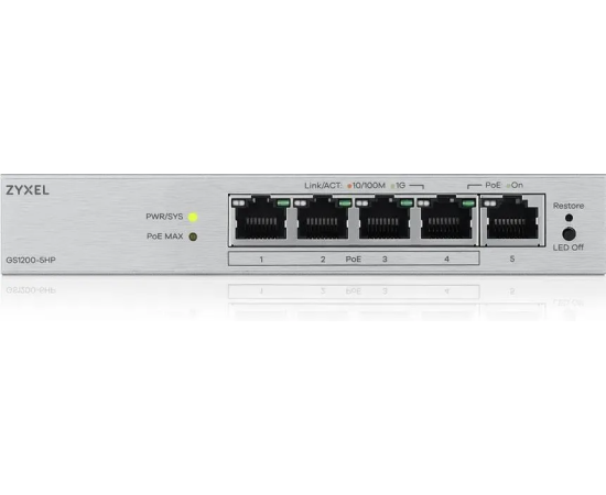 Коммутатор управляемый Zyxel GS1200-5HPV3-EU0101F (L2) 5x1Гбит/с 4PoE+ 68W