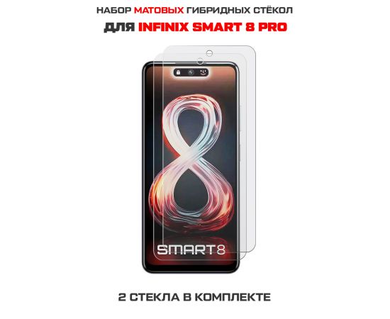 Комплект из 2-х защитных гибридных стекол МАТОВЫХ Krutoff для INFINIX Smart 8 Pro