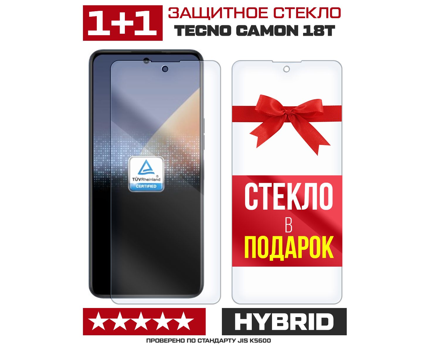 Комплект из 2-x защитных гибридных стекл для Tecno Camon 18T