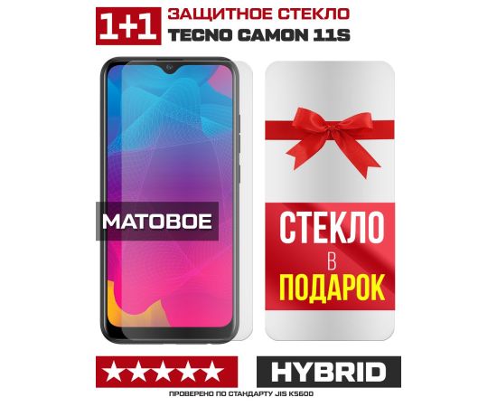 Комплект из 2-x защитных гибридных стекол МАТОВЫХ Krutoff для Tecno Camon 11S