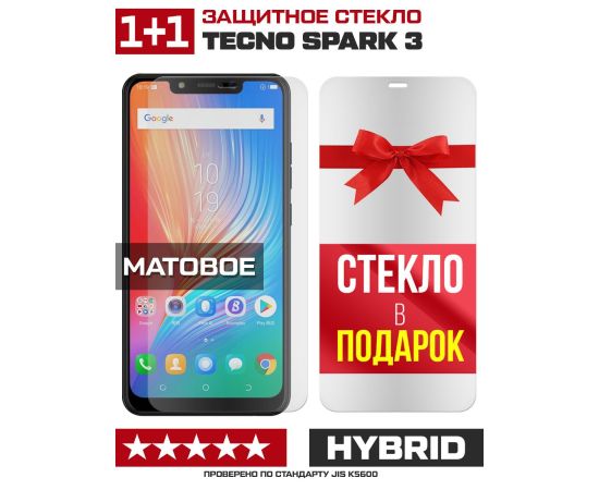 Комплект из 2-x защитных гибридных стекол МАТОВЫХ Krutoff для Tecno Spark 3