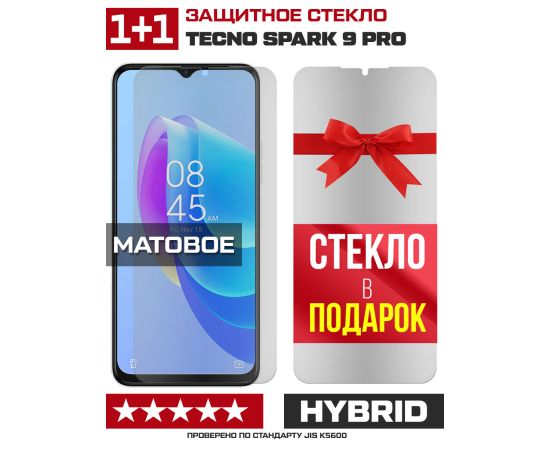 Комплект из 2-x защитных гибридных стекол МАТОВЫХ Krutoff для Tecno Spark 9 Pro
