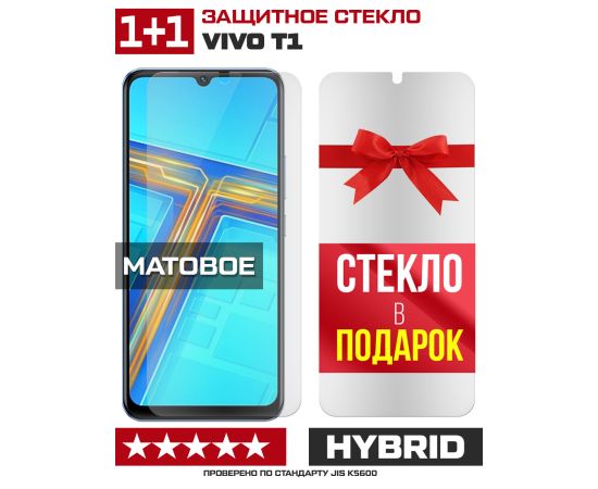 Комплект из 2-x защитных гибридных стекол МАТОВЫХ Krutoff для Vivo T1