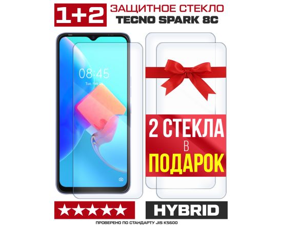 Комплект из 3-x защитных гибридных стекл для Tecno Spark 8C