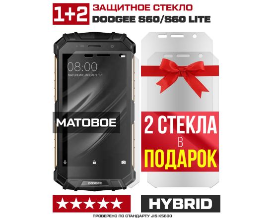 Комплект из 3-x защитных гибридных стекол МАТОВЫХ Krutoff для Doogee S60/S60 Lite