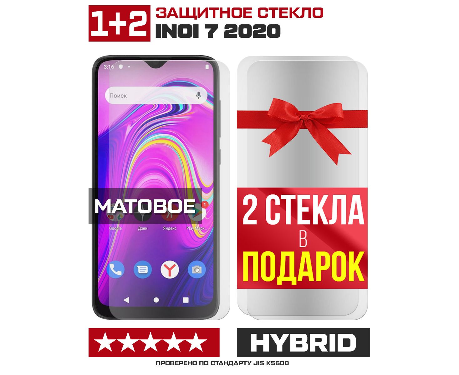 Комплект из 3-x защитных гибридных стекол МАТОВЫХ Krutoff для INOI 7 2020