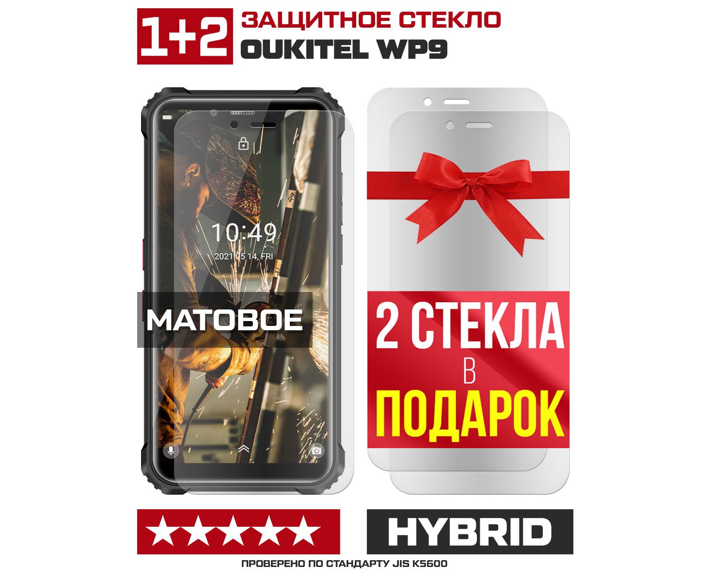 Комплект из 3-x защитных гибридных стекол МАТОВЫХ Krutoff для Oukitel WP9