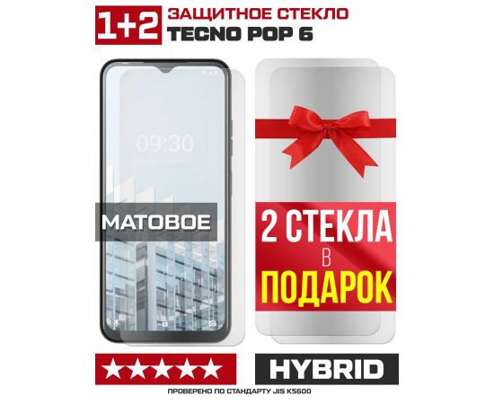 Комплект из 3-x защитных гибридных стекол МАТОВЫХ Krutoff для Tecno POP 6