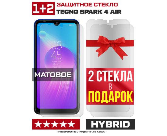 Комплект из 3-x защитных гибридных стекол МАТОВЫХ Krutoff для Tecno Spark 4 Air