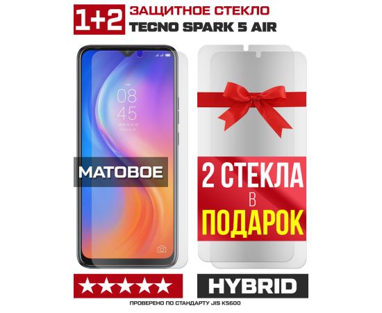 Комплект из 3-x защитных гибридных стекол МАТОВЫХ Krutoff для Tecno Spark 5 Air