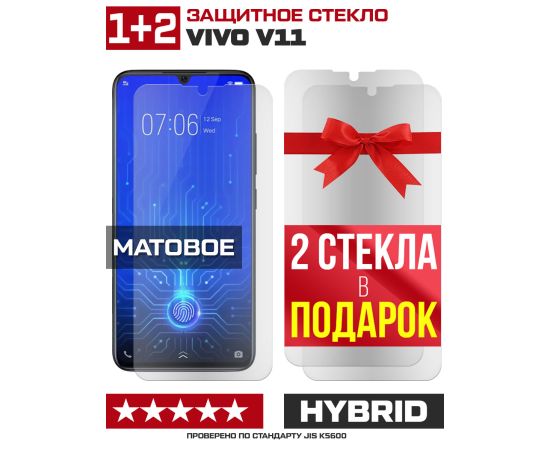 Комплект из 3-x защитных гибридных стекол МАТОВЫХ Krutoff для Vivo V11