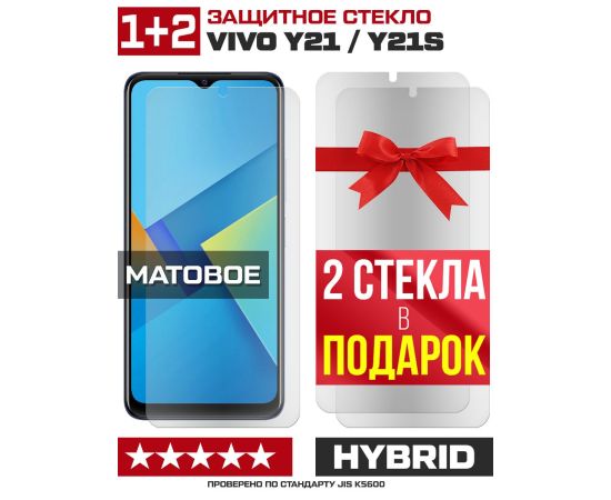 Комплект из 3-x защитных гибридных стекол МАТОВЫХ Krutoff для Vivo Y21/Y21s