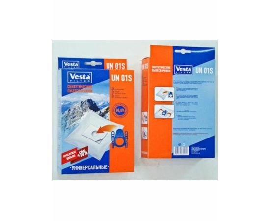 Мешки для пылесосов Vesta filter UN01S для ЛЮБЫХ бытовых пылесосов. Мешки с клейкой основой , используются в случае наличия рамки от оригинального мешка, которую потребуется приклеить на мешок из набора UN 01 S. Произведены из синтетического микроволокна, обладают высокоэффективным качеством фильтрации в 99.9 % (0.3 микрон), обеспечивают очистку воздуха выходящего из пылесоса. Благодаря синтетическому материалу мешки VESTA FILTER UN 01S не боятся воды и острых предметов, сохраняют мощность пылесоса при заполнении, вмещают в себя больше содержимого чем мешки из бумаги. В комплектацию входят 4 пылесборника , 1 фильтр моторного отсека и 1 фильтр выходящего воздуха.