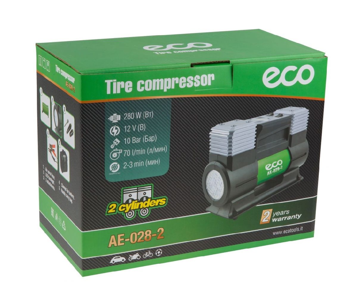 Компрессор автомобильный ECO AE-028-2 (12В, 70 л/мин)