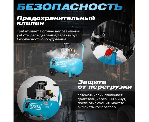 Компрессор DGM AC-150C (DG2720-1) - предназначен для сжатия воздуха и использования в различных промышленных и бытовых целях. Тепловая защита электродвигателя обеспечивает безопасность и предотвращает перегрев двигателя в случае его перегрузки или нештатной работы. Имеется 2 быстросъемных выхода, для подключения несколько инструментов.