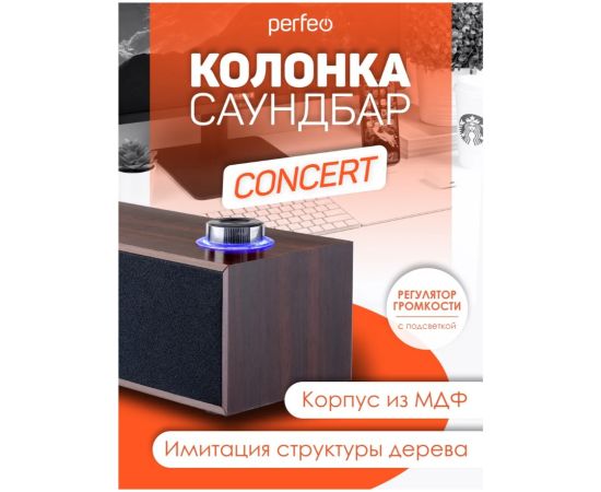 Компьютерная колонка-саундбар Perfeo "CONCERT", мощность 6 Вт, USB, "дерево", коричневый