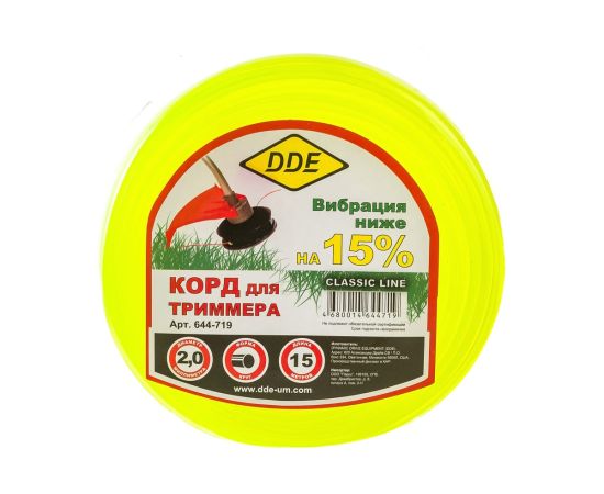 Корд триммерный DDE Classic line 644-719 круг 2,0ммх15м, желтый в блистере