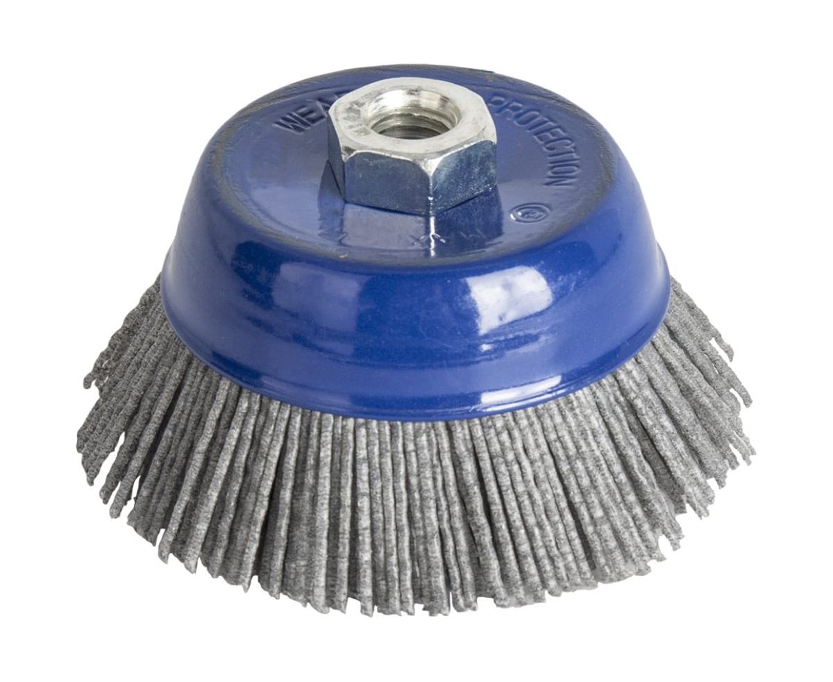 Кордщетка чашеобразная абразивная ПРАКТИКА 242-649 является сменным элементом для угловых шлифовальных машин и применяется для удаления лака, матирования, структурирования древесины, тонкой шлифовки металла. Рабочая часть состоит из абразивного материала.