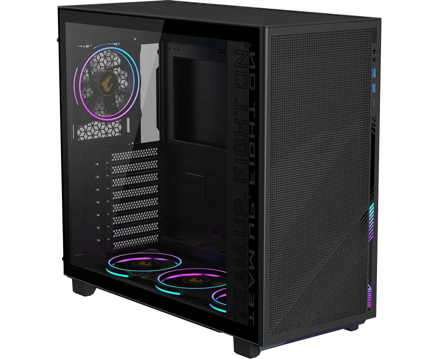 посадочные места верхней панели совместимы с двумя вентиляторами 140 мм дополнительные 3 места для установки 3.5" HDD вместо вентиляторов нижней панели; встроенный контроллер PWN/ARGB