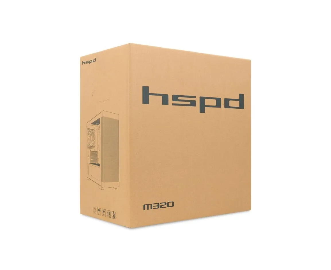 Корпус HSPD M320 (M320-TGBK-ARGB), Mesh Mini-tower, Black, slide TG, 0.45 SPCC, 2x140mm ARGB+1x120mm ARGB mATX